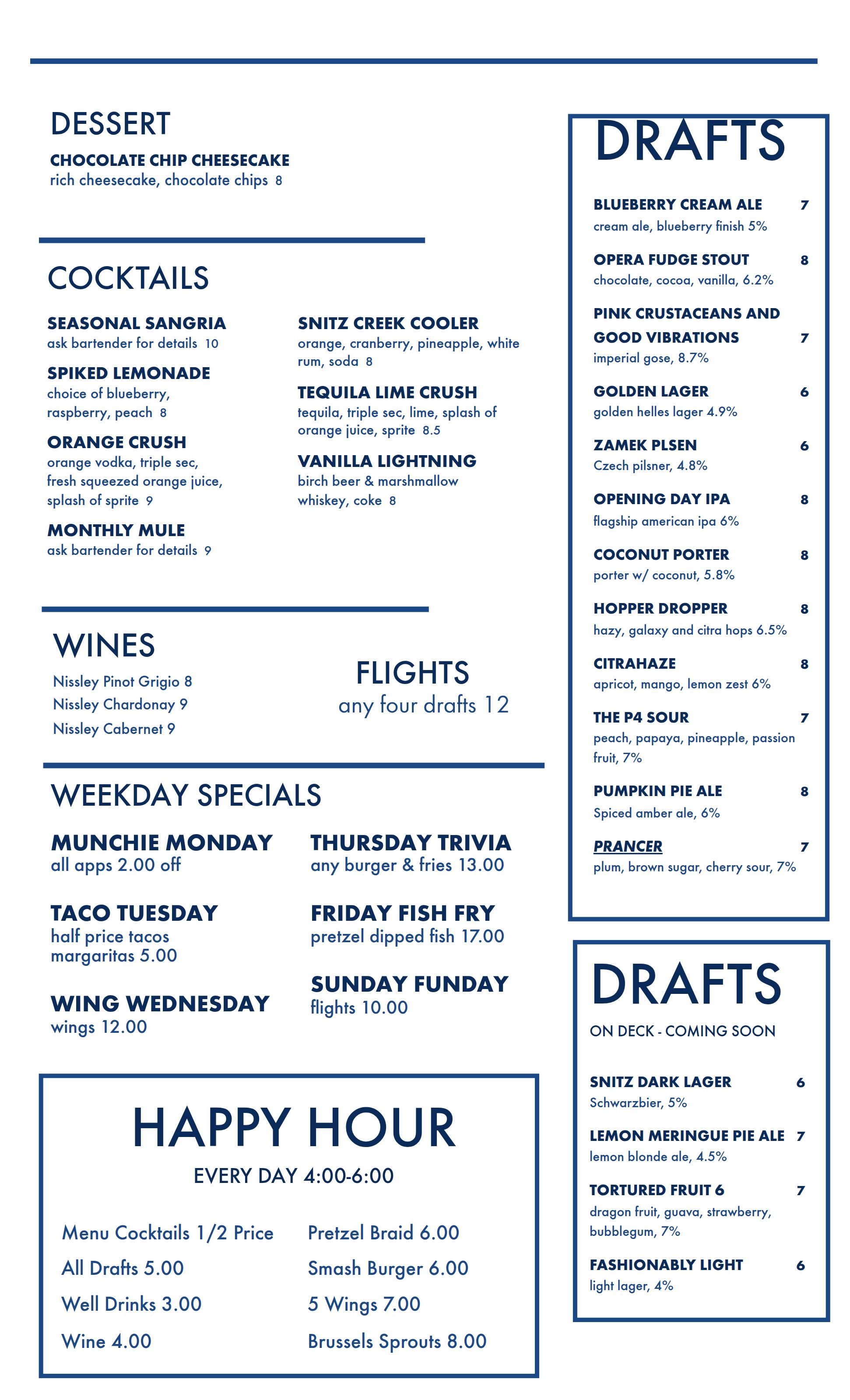 Tap list, food menus and upcoming events below!