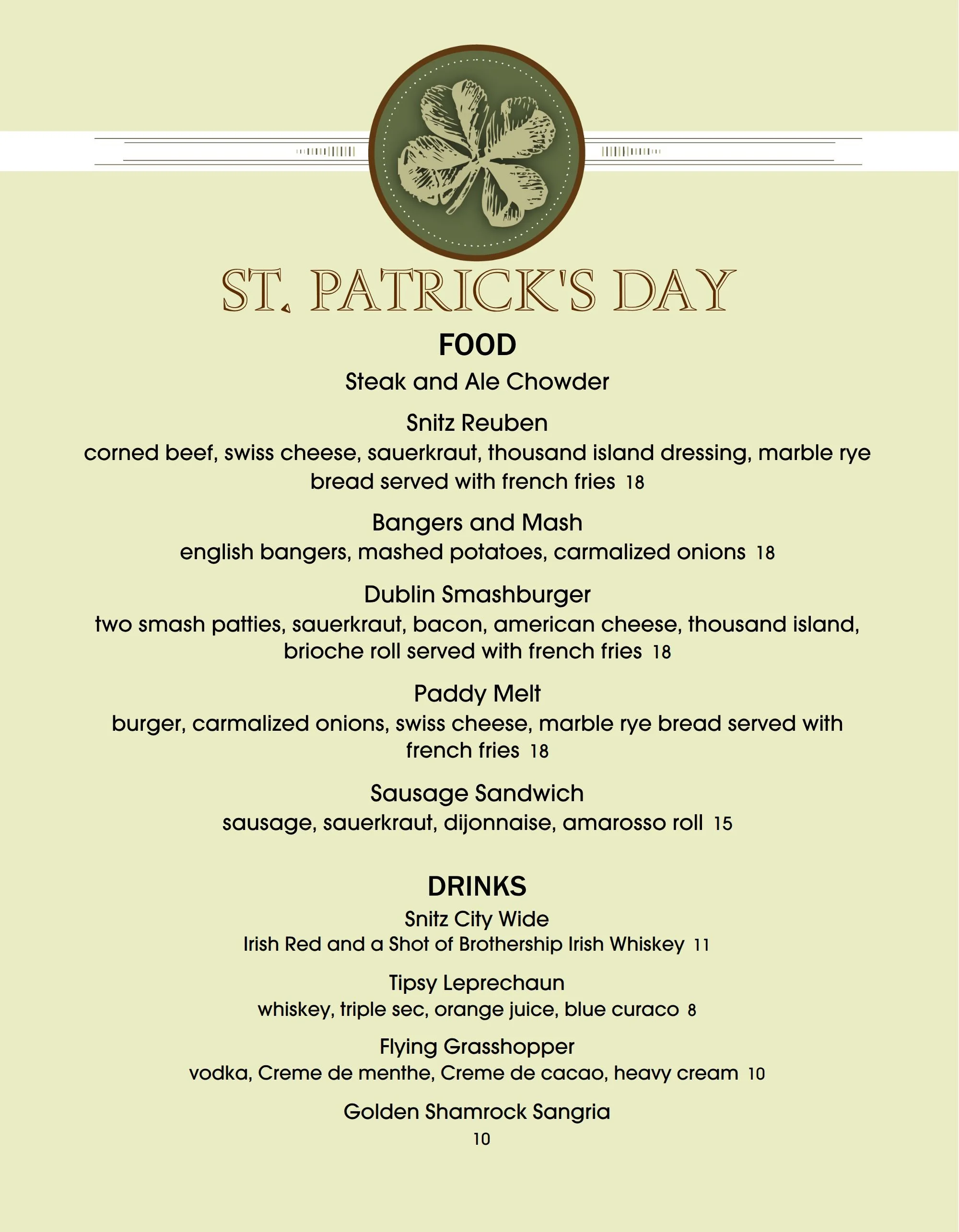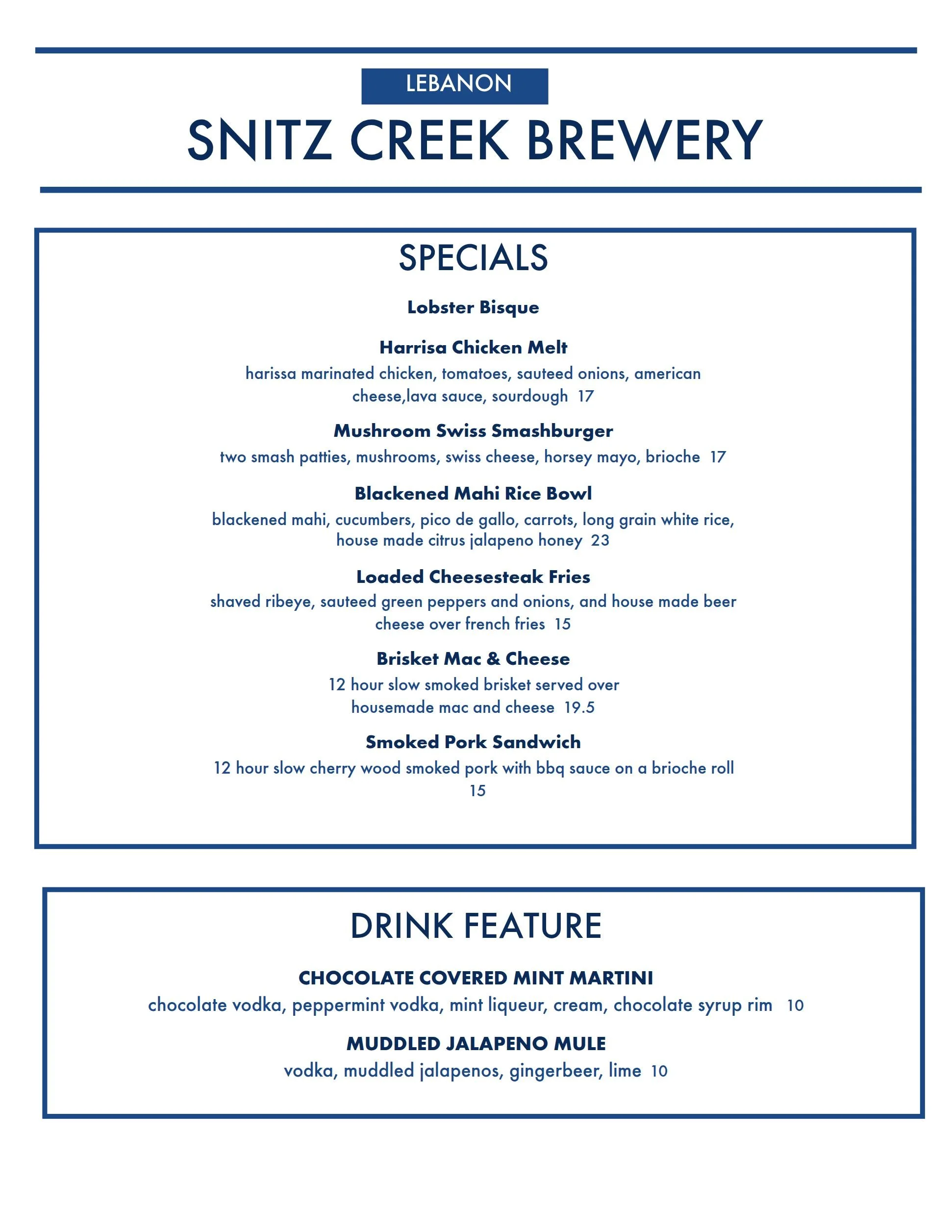 Lebanon Brewery Everyday Menu